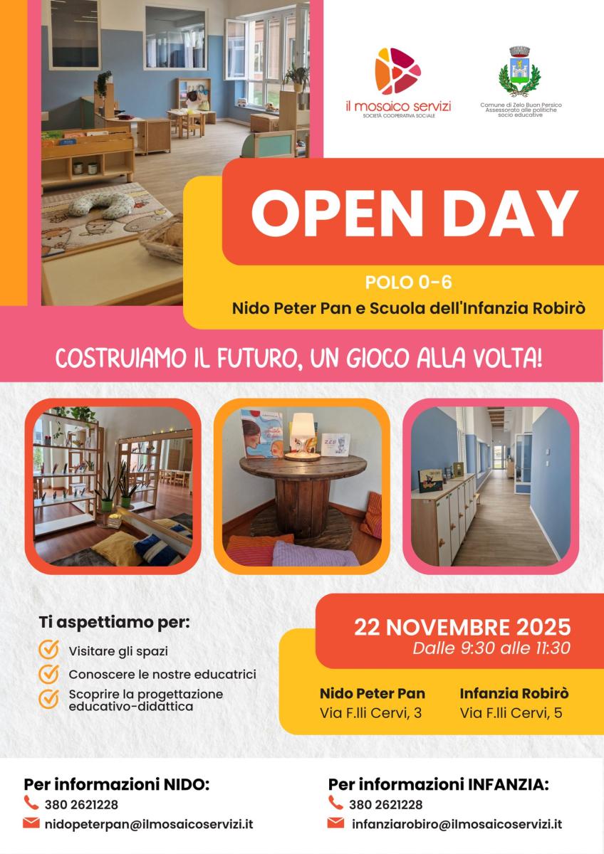IL PROSSIMO OPEN DAY AL NOSTRO POLO 0-6 ANNI DI ZELO BUON PERSICO (LO)