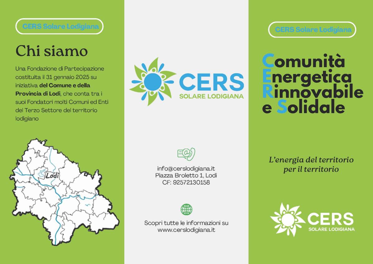 Il 31 gennaio 2025 è stata costituita la Comunità Energetica Rinnovabile Solidale CERS Solare Lodigiana, un ente senza scopo di lucro in forma di fondazione di partecipazione, che promuove la produzione e la condivisione di energia rinnovabile nel territorio lodigiano. Creata nell’ambito del progetto "Lodi Solare", sostenuto da Fondazione Cariplo, la CERS Solare Lodigiana ha avuto come Fondatori Promotori il Comune di Lodi, la Provincia di Lodi e i comuni di Zelo Buon Persico, Salerano sul Lambro, Orio Litta, Casaletto Lodigiano, Lodi Vecchio, Ospedaletto Lodigiano, Corte Palasio, nonché la Cooperativa sociale Il Mosaico Servizi e la Fondazione Casa della Comunità. Dal 2025 hanno aderito come Fondatori anche il comune di Merlino, Boffalora d’Adda, Livraga, Tavazzano con Villavesco e Ossago Lodigiano.